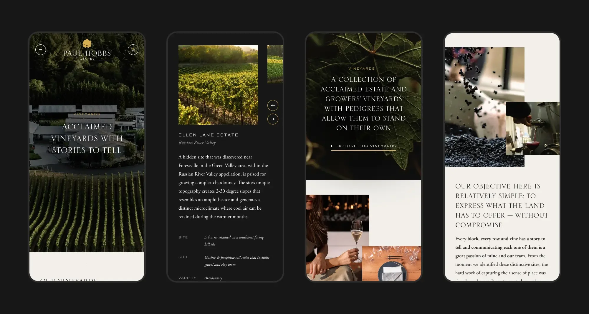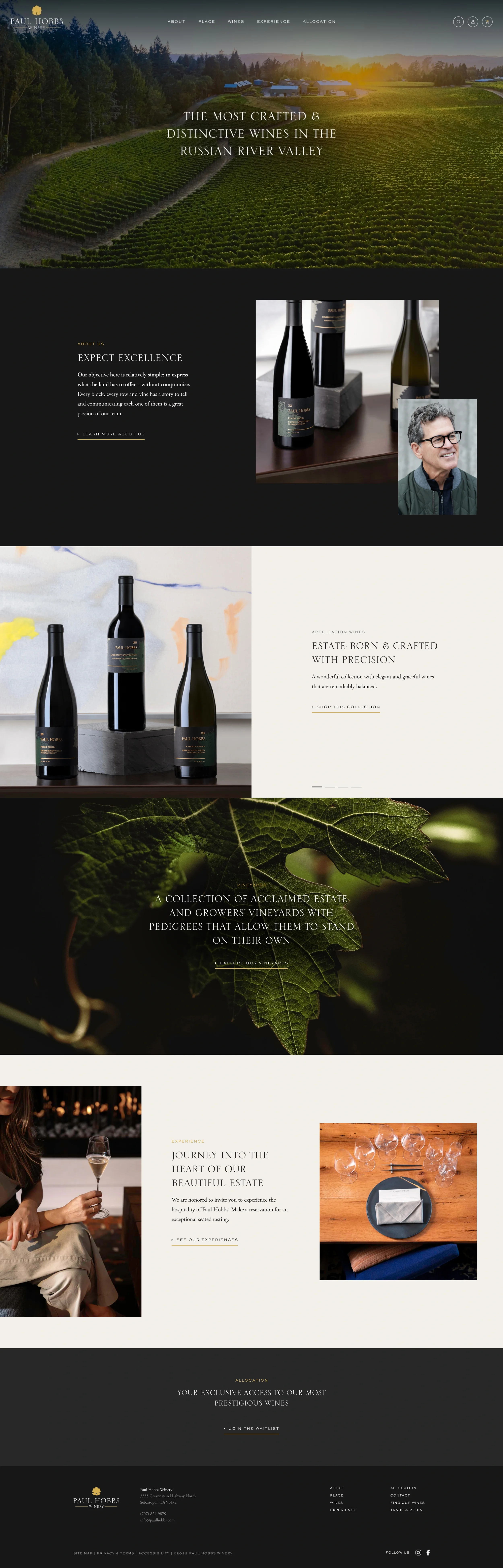 Paul Hobbs Winery cultivates a deep connection to place, terroir, and winemaking craft. This redesign project was born to give their digital presence the same clarity and quiet sophistication that defines their brand: a site that feels like a refined journey through its craftsmanship and expressiveness.